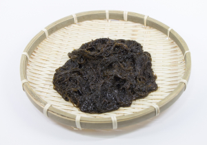 本部の海歩人(うみあっちゃー)自慢のもずく。必要量を取り出しよくかき混ぜながら塩抜きをします。