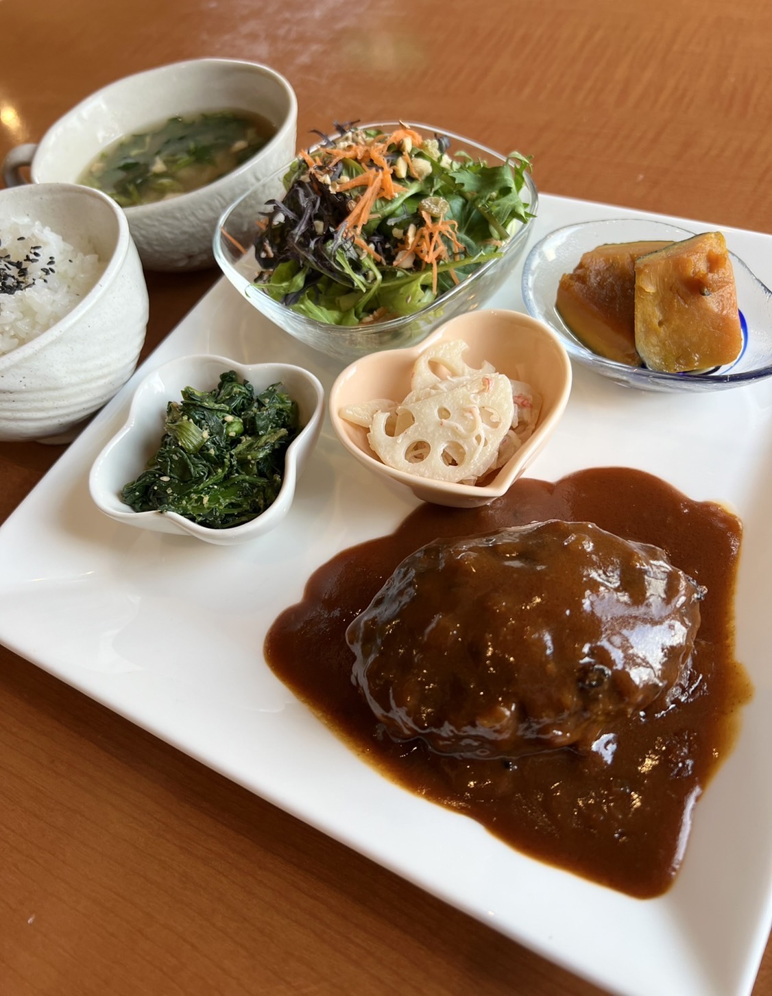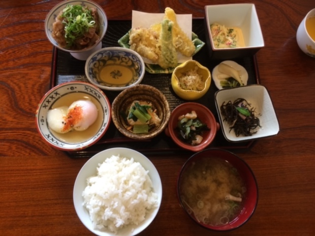 世羅町の季節野菜を使用した一汁三菜ランチやふわふわメレンゲのスフレドリアが人気。