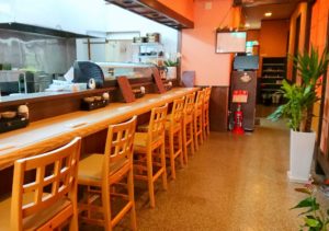 店内はカウンターが4席。座敷は鉄板用テーブルが3席あります。テイクアウトもあります。感染症予防対策も十分に行っておりますので是非お越しください。