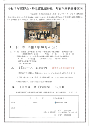 5번째가 되는 올해도 와카야마 타카노야마와 수호신탄 생도 히메신사에 연공을 봉납해