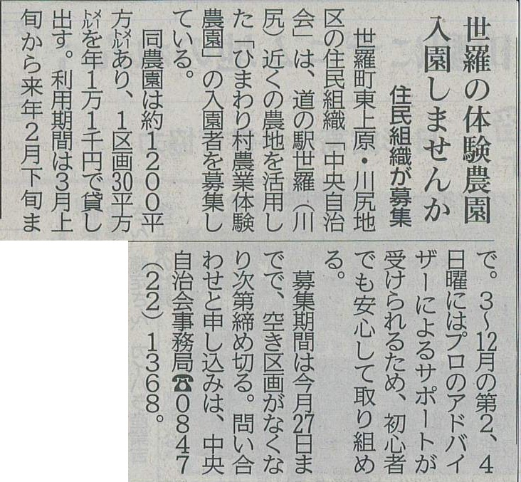 中央自治会が道の駅世羅近くの「ひまわり村農業体験農園」の入園者を募集しています。プロによるサポートもありますので初心者の方でも安心して取り組めます。