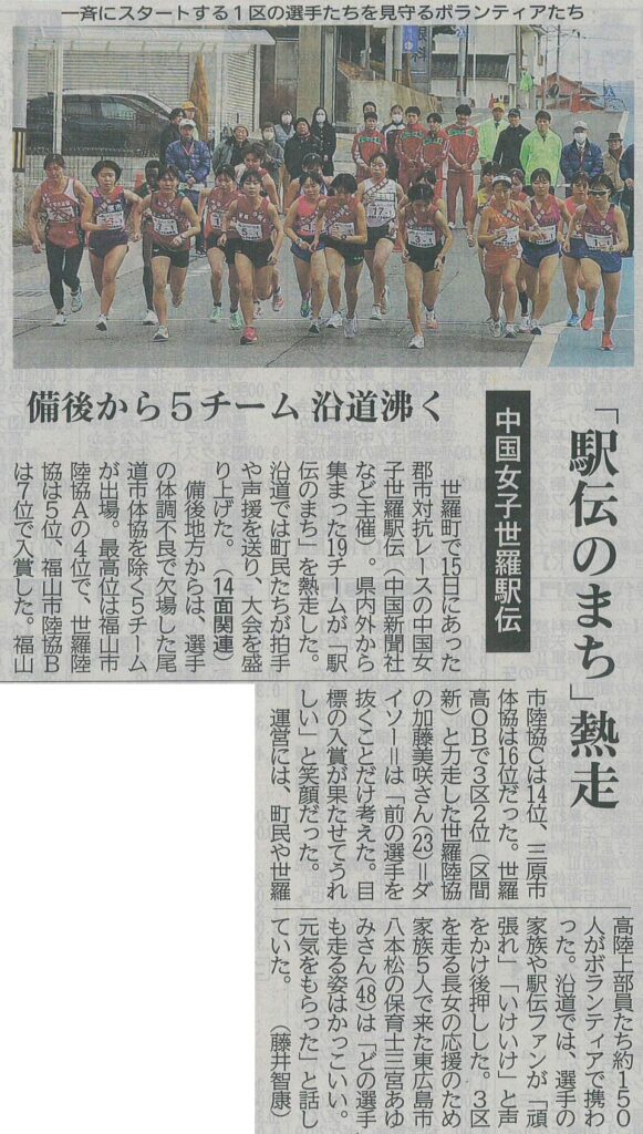 世羅町で15日にあった中国女子世羅駅伝(中国新聞社など主催)。県内外から集まった19チームが「駅伝のまち」を熱走しました。